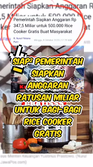 Siap² pemerintah siapkan anggaran ratusan miliar untuk bagi-bagi rice cooker gratis (9 Oktober 2023) #RiceCooker #bantuanricecookergratis #bansos #info #infobansos