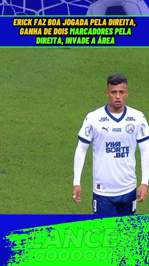 Erick faz boa jogada pela direita, ganha de dois marcadores pela direita, invade a área, mas dá cruzamento#Bahia #Botafogo #BahiaxBotafogo #Brasileirão #esporte