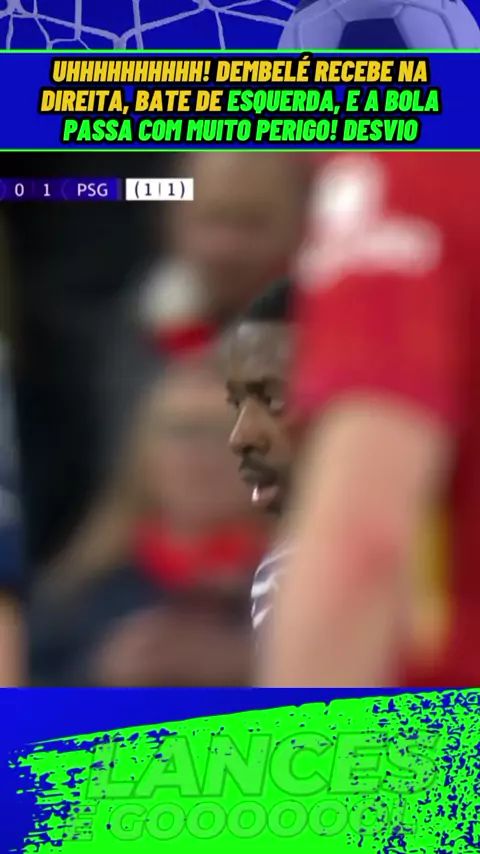 Uhhhhhhhhhh! Dembelé recebe na direita, bate de esquerda, e a bola passa com muito perigo! Desvio#liverpool #psg #liverpoolXpsg #esporte #ligadoscampeões