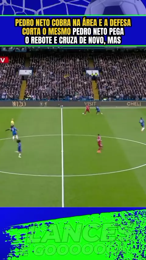 Pedro Neto cobra na área e a defesa corta. O mesmo Pedro Neto pega o rebote e cruza de novo, mas Mamardashvili#Chelsea #liverpool #Chelseaxliverpool #esporte #PremierLeague