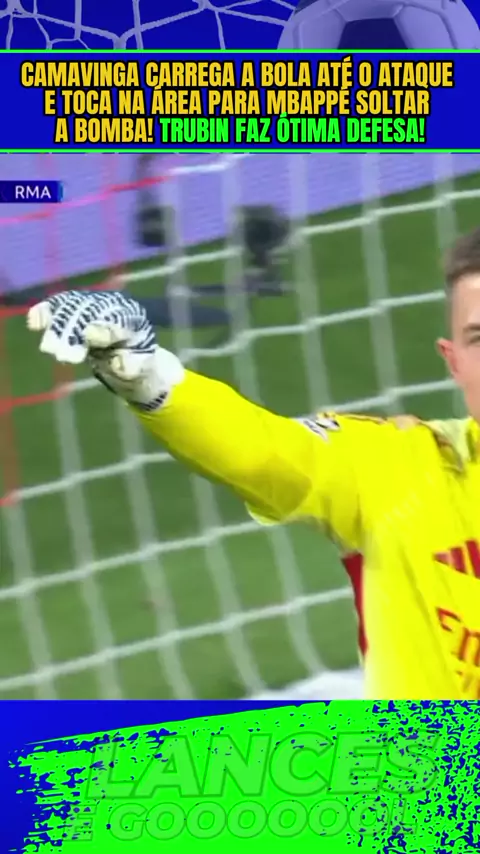 Camavinga carrega a bola até o ataque e toca na área para Mbappé soltar a bomba! Trubin faz ótima defesa!#championsleague #BenficaxRealmadrid #Realmadrid #Benfica #Esporte
