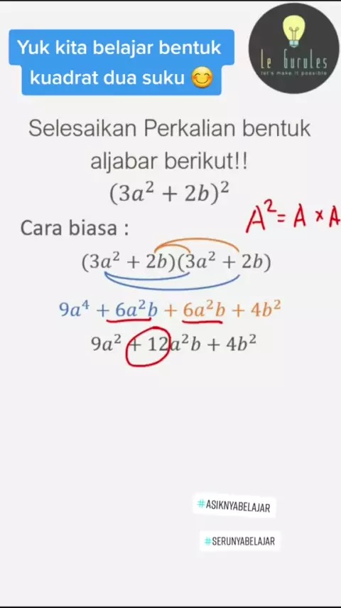 Bagaimana ya bentuk Khusus kuadrat dua suku? Yuk kita belajar sama - sama#aljabar#matematikamudah#serunyabelajar#legurules#matematika#asiknyabelajar