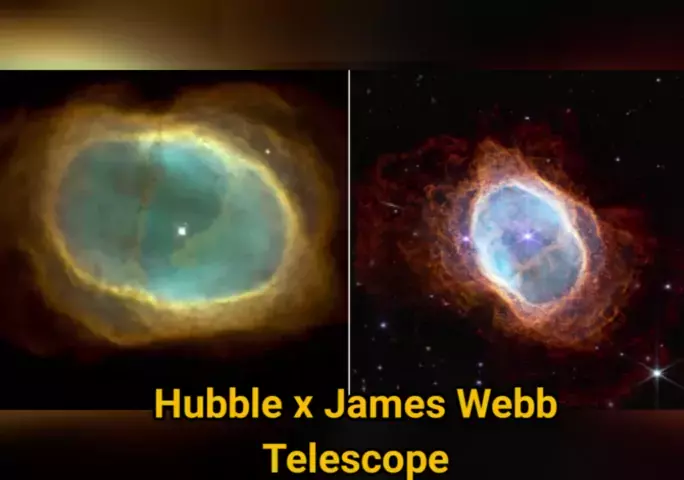 Um comparativo entre telescope Hubble e James Webb telescope #BonecaIA #galaxia #universo #fy #kwai