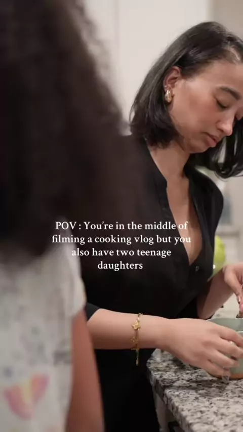 Eu estava no meio das filmagens de um vlog de culinária, mas também tenho duas filhas adolescentes # motherdaughter # Momsof # momcontent