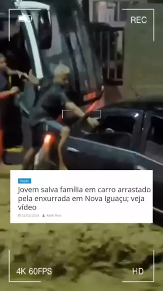 Jovem salva família em carro arrastado pela enxurrada em Nova Iguaçu #NovaIguaçu #enchente #Notícia #News #Chuva