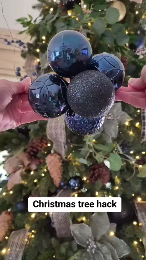 Decoração de árvore de Natal hack! Faça bolas de cluster para preencher o espaço! Use qualquer tamanho, textura ou combinação de cores # cozychristmas # diychristmasdecor # christmastreedecorating