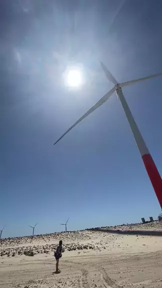 Léia Pulando corda no parque eólico
