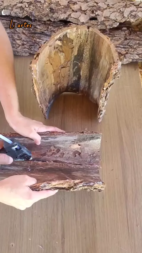 #artesanato ,vaso feito com cascas de árvore