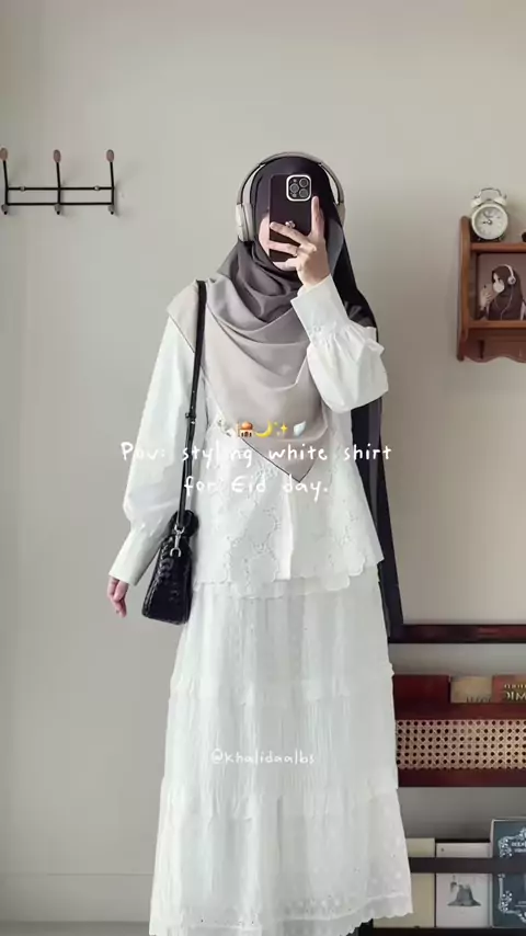 Details: 🕊️kemeja bordir: link 1378 🕊️rok: link 1379 🕊️pashmina gradasi (hazelnut): link 1380 🕊️tas: christy ng 🕊️sepatu: link 1168 #kemejalebaran #blouselebaran #whiteforRaya #kemeja #eidoutfit2025 #SpillProdukRamadhan #ShopeeRamadhanLook #shopeehaul #OOTD #outfitideas #tuniklebaran #bajulebaran #shopeehaullebaran2025 #eidoutfitideas #dresslebaran #SpillProdukRamadhanShopee #ootd