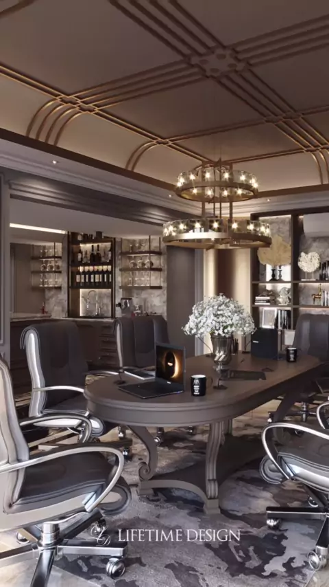Siapa yang disini menginginkan desain kantor seperti ini?🤔✨ # #lifetimedesign #homedesign #luxuryhomes #interiors #designoffice #workingarea #homeofficedecor #wfhlife
