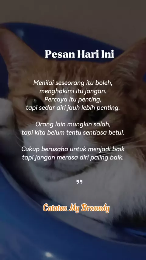 Selamat Pagi... Jangan menilai orang buruk apalagi menghakimi..... #MyBrowndy #CatatanBrowndy #kucingrumah #hiburanku