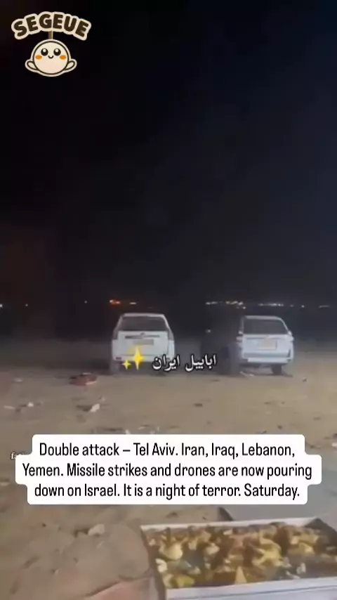 "Double attack – Tel Aviv. Iran, Iraq, Lebanon, Yemen. Missile strikes and drones are now pouring down on Israel. It is a night of terror. Saturday." Tradução para o português: "Ataque duplo – Tel Aviv. Irã, Iraque, Líbano, Iêmen. Mísseis e drones estão agora caindo vindo de todos os lados sobre Israel. É uma noite de terror. Sábado."🇮🇱🇱🇧🇺🇸🇹🇯🇵🇸🛡️⚔️🛡️