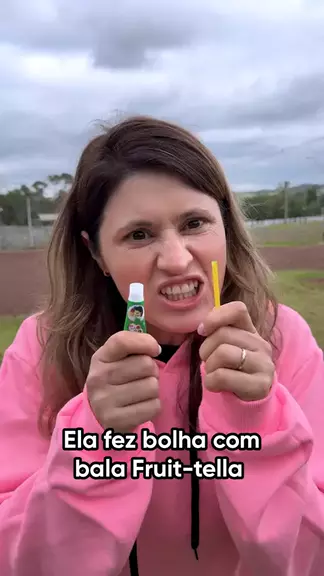 Ela fez bolha com bala Fruit-tella 🍬