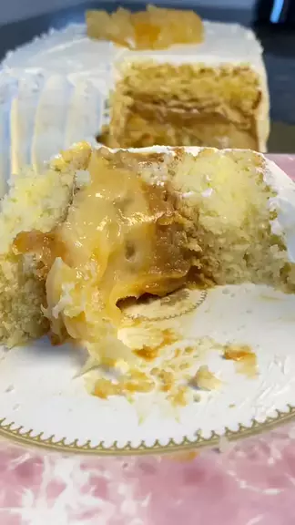 Bolo de creme de abacaxi com doce de leite ๐ #bolo #abacaxi