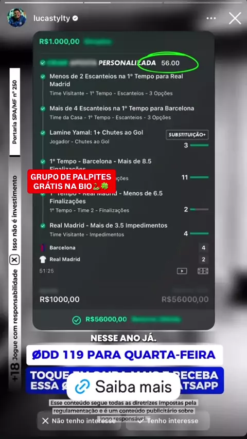 DICA DO DIA🐍🍀 #dicas #apostas #palpites #lucastylty #neymar