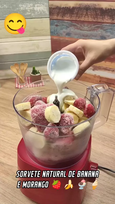 SORVETE NATURAL DE BANANA E MORANGO ๐ ๐ ๐จ ๐ฆ #sorvetenatural #receitasKWAI #sejacriador