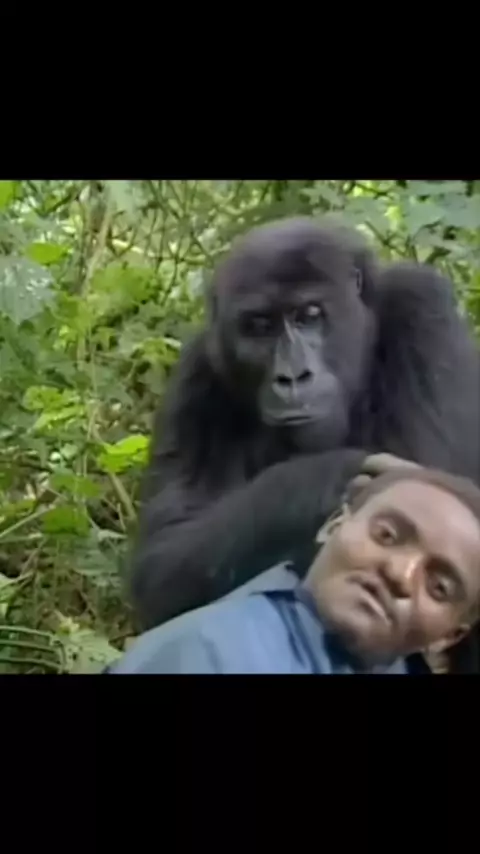 Macho jovem selvagem é extra gentil com o homem com desfiguração facial # gorila # africa # nature # jungle # beautiful