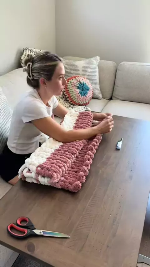 Eu vim com este padrão como eu estava indo junto, mas eu realmente gosto de como ele acabou! • • # # fingerknitting # chunkyblankettutorial # handknitblanket # summerdecor # diyhomedecor # etsycreatorco # chenilleblanket # armknitting # diycrafts # handknit # sidehustle # newhobby # howtocrochet