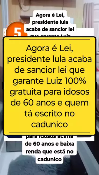 Agora é Lei, presidente lula acaba de sancior lei que garante Luiz 100% gratuita para idosos de 60 anos e quem tá escrito no cadunico #ultimasnoticias #Luiz #hotspost #topz #fazoL