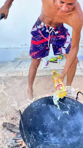 Fritando banana no tacho