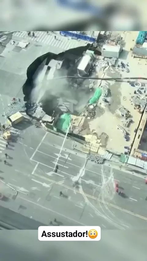 Um grande sumidouro abriu repentinamente na quarta-feira, 11 de fevereiro, no cruzamento de Qixin Road com Li’an Road, no Distrito de Minhang, Xangai, China. #tragedia #Destruição #China #kwainoticia # #CarnaKwai