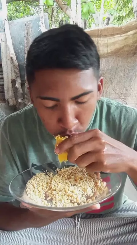 comendo manga com farinha de puba #nordeste #roça #manga #viral #farinha More