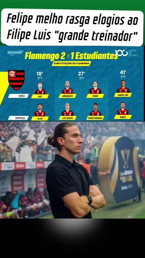 Felipe melo elogiou o trabalho do Filipe luis técnico do flamengo #FLAMENGO #filipeluis #FlamengoxEstudiantes #Arrascaeta #ultimasnoticias