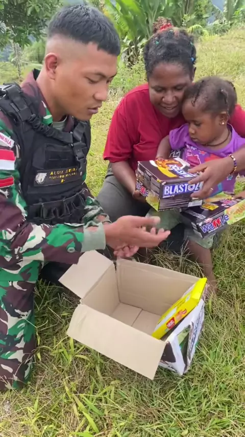 Terimakasih buat ibuk Lina herlina harahap yang udah kasih jajan buat ester , senang nya minta ampun ester 🥰❤️#tniindonesia🇮🇩#batalion115ml#papua#adikester