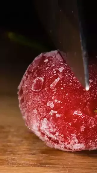 Cutting Frozen Cherry #satisfyingvideos #asmrvideo #macro #closeup #asmr💦