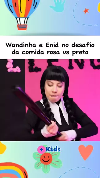Wandinha e Enid no desafio da comida rosa vs preto #Criança #kids #baby