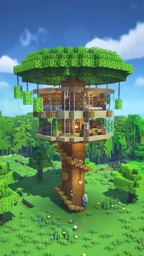 Como construir uma casa na árvore gigante🌳⛏️ #minecraft