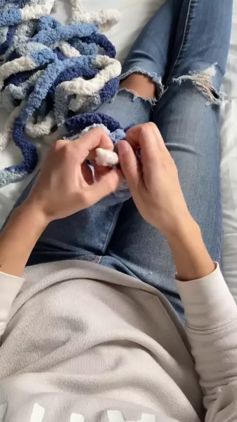 Mais um pufe de almofada redonda mesclada de azuis e brancos! Eu me divirto muito fazendo estes fios: Cobertor Bernat tamanho grande 7 na cor Moody Blues https: / / liketk.it / 4n6Te * Este não é um tutorial em vídeo. Eu não tenho um tutorial para o pufe de travesseiro redondo neste momento. # sabsstuffies # chunkyknit # chunkyyarn # chunkyhandknitblanket # chunkyblanket # chunkyhandknit # largeblanket # blanket # handmade # ShopSmall # ShopLocal # bee # bees # stuffedanimalbee # plushie # croc...