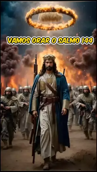 Salmo 144 Bendito seja o Senhor, minha rocha, que treina minhas mãos para a batalha e meus dedos para a guerra. Ele é meu aliado fiel, minha fortaleza, minha torre de proteção e meu libertador; é meu escudo, aquele em quem confio, que subjuga os povos a mim. Senhor, que é o homem para que cuides dele, o filho do homem para que dele te lembres? O homem é como um sopro; seus dias são como uma sombra passageira. Estende os teus céus e desce, toca os montes para que fumeguem. Lança relâmpagos e d