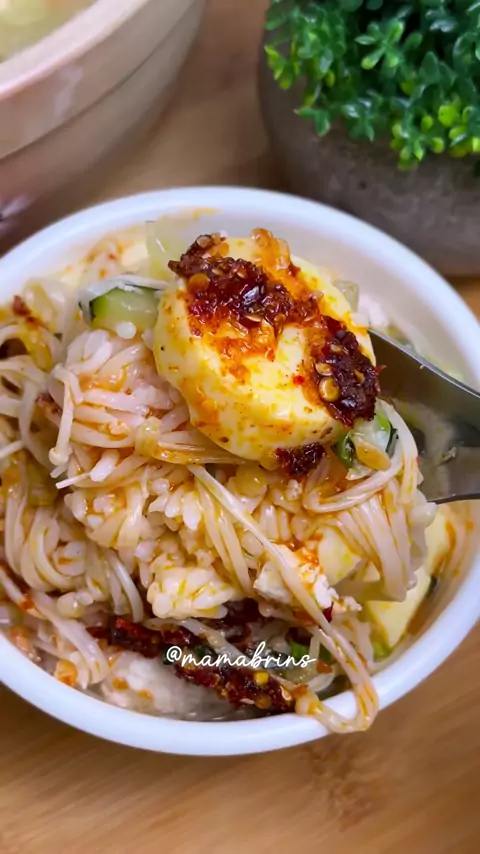 Assalamualaikum. Menu berkuah comfort food andalan pas lagi flu, Sup Ayam Jamur Tahu. Basenya cuma bawang putih aja, bumbunya juga simple cuma garam, lada dan kaldu. Isiannya bisa disesuaikan yaa 🫶🏻 Sup Ayam Jamur Tahu @mamabrins Bahan: 250 gram Ayam Giling (bumbui dengan garam dan lada) 1 buah Jamur Enoki 1 buah Tofu/Tahu 1 buah Zukini 3 siung Bawang Putih Cincang 750-1000 ml Air Putih 2 sdm Minyak Wijen 1 batang Daun Bawang 3 sdm Larutan Maizena Secukupnya Bawang Putih Goreng (untuk taburan...