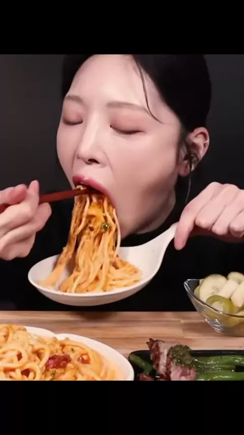pasta with ground beef mukbang (eatwithboki ytb)#mukbang#asmrfood#pasta#steak#eatwithboki
