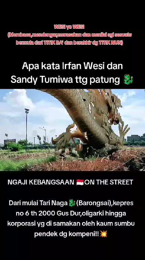Ngaji kebangsaan 🇲🇨on the street ala Irfan Wesi(Santri bad boy)& Sandy Tumiwa(seleb cassanova😁)yg membahas mulai Tari 🐉 (barongsai),kepres no th 2000 oleh Gus Dur,makna oligarki dan korporasi serta perbedaannya dg kompeni yg di sebarkan oleh para SENGKUNI yg di percaya oleh para FAQIR ILMI yg sgt bnyk di negri ini🔥#viral##pik2#pantaiindahkapuk#gusdur#pahlawannasional