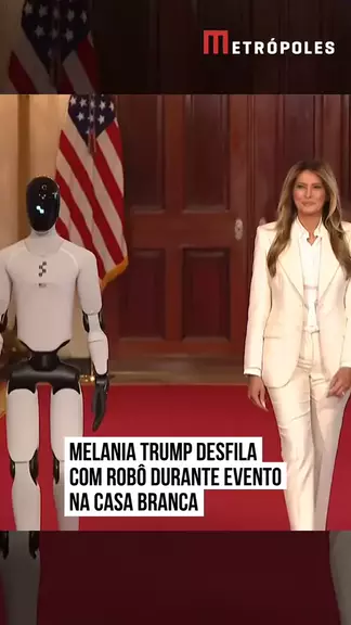 A primeira-dama dos #EstadosUnidos, #MelaniaTrump, fez uma breve caminhada, nesta quarta-feira (25/3), ao lado de um #robôhumanoide chamado "Figure 3". A cena ocorreu durante a abertura da cúpula inaugural da Coalizão Global "Cultivando o Futuro Juntos", realizado na Casa Branca, em #Washington. Leia no Metrópoles. #KwaiNotícias 🤳 U.S Netwoork Pool via Reuters