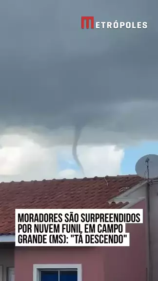 Uma moradora de um condomínio em #CampoGrande (#MS), registrou, em vídeo, uma nuvem funil na manhã desta quarta-feira (14/1), minutos antes do início de uma chuva pela região. Na ocasião, ela ficou espantada com o fenômeno, e apontou que a nuvem estava "descendo". "Aqui está tendo muitos trovões e raios toda hora. Começou os pingos grossos, e comecei a filmar", disse Fernanda Tauana. #KwaiNotícias