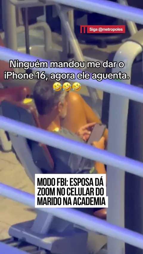 🤣 Um vídeo pra lá de #engraçado está bombando nas redes sociais: enquanto #malhava com o marido, uma esposa resolveu ativar o modo “detetive” e usou o zoom máximo do celular para espiar o que ele estava fazendo no próprio aparelho. Com olhar afiado e zoom cinematográfico, ela não perdeu um clique e a internet, claro, foi à loucura. Afinal, quem nunca ficou desconfiado daquele “digitando demais” entre uma série e outra na academia? #KwaiNotícias 📹 @anacoelhomts (tk) | @myhoodbr