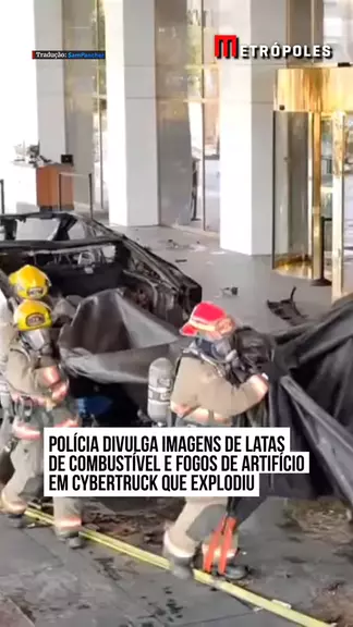 Polícia divulga imagens de latas de combustível e fogos de artifício em #Cybertruck que explodiu. “O fato de ser um Cybertruck realmente limitou o dano”, afirmou o xerife Kevin McMahill ao mostrar que as laterais do veículo ficaram intactas. “Nosso segundo objetivo é definir se isso foi um ato de terr0r1smo”, salientou o agente do #FBI Jeremy Schwartz. #KwaiNotícias