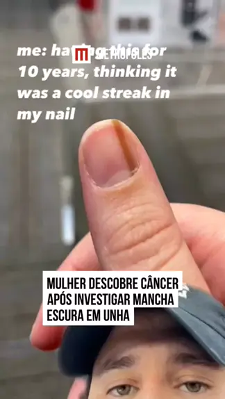 A norte-americana Maria Sylvia viralizou nas redes sociais, este mês, ao contar que conviveu por 10 anos com uma mancha escura na #unha do polegar, mas apenas este ano descobriu se tratar de um melanoma subungueal, chamado popularmente de #câncer de unha. História completa no metropoles.com! #KwaiNotícias