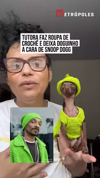 🤣🐶 A tutora Rozi Fátima decidiu dar de presente de #Natal ao #doguinho Yoxi uma roupa feita de #crochê. No entanto, ao registrar o momento em que a peça ficou pronta e compartilhar nas redes sociais, Rozi não esperava que Yoxi ficasse a "cara" do cantor #SnoopDogg: "Era para ser uma linda roupa para o Natal e acabou virando uma fantasia", escreveu Rozi na publicação. Acharam parecido? #KwaiNotícias 🤳 rozi_pinscher_micros_goias (ig)