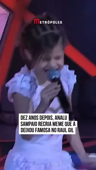 Um #meme que ainda hoje circula na internet é de um garotinha que, no programa #RaulGil, tenta imitar Elis Regina na música #ÁguasdeMarço. Isso ocorreu em 2014 e, dez anos depois, #AnaluSampaio recriou o meme na internet. Nas imagens, aparece primeiro a imagem da garotinha se esforçando no fim da música e, logo em seguida, Analu crescida imitando os mesmos sons que fez na época. "E olha quem cresceu... 10 anos depois, esse vídeo volta a fazer sucesso e vira meme kkkkkk”