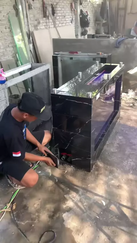KOLAM BUFFET PORTABLE Pesanan Bpk.Bagas dari SURABAYA - JAWA TIMUR Siap meluncur ke rumah tuan nya🚛💨 Ukuran kolam PxLxT 140x40x80cm finishing granit tile hitam motif petir Kaca 1 sisi ketebalan 12mm 4 kotak chamber filter di belakang Info lebih detail wa admin mbak arni di kolom komentar 📍Alamat produksi : Jl. Manggala RT/RW 45/09 Sananrejo, Turen-Malang🇲🇨#kolamportable#kolamminimalis#kolamikan#idedesign#kolamikanminimalis