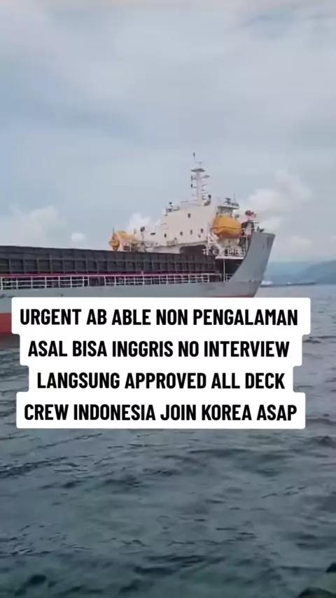 URGENT AB ABLE NON PENGALAMAN LUAR NEGERI BUAT DI KAPAL DECK CARGO SALARY USD 600 ALL DECK CREW INDONESIA NO INTERVIEW LANGSUNG APPROVED HARUS BISA INGGRIS MINIMAL BAHASA KERJA JOIN DI KOREA NANTI JOIN BARENG 2ND OFF DAN BOSUN YANG MINAT KIRIM CV KE EMAIL DAN HUB STAFF ATAU LANGSUNG DATENG KEKANTOR KAMI YANG SUDAH TERTERA LENGKAP DI BIO KAMI DI KOLOM UTAMA MCM TERIMA KASIH JANGAN LUPA FOLLOW SHARE LIKE COMMENT THANK YOU GUYS#pelautindonesia#pelautindonesia🇲🇨🇲🇨#lokerpelautindonesia#jo...