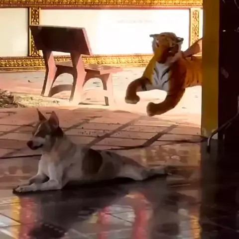 Tigre falso vs cachorro 🤣🤣🤣😂 #animais #pipoco #fy #eunotrabalho #RapidoComoTremBala