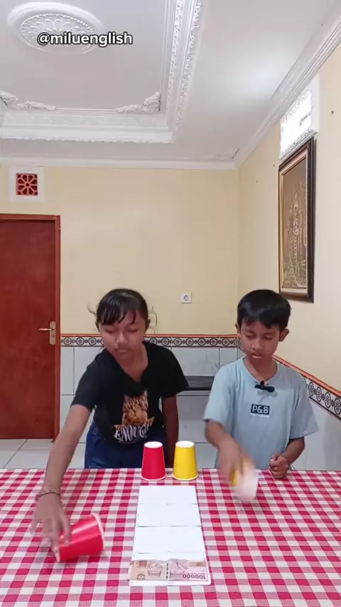 Balapan flip paper cup. #miluenglish #belajarbahasainggris #kosakatabahasainggris #englishforkids #game #edukasi #challenge #papercup