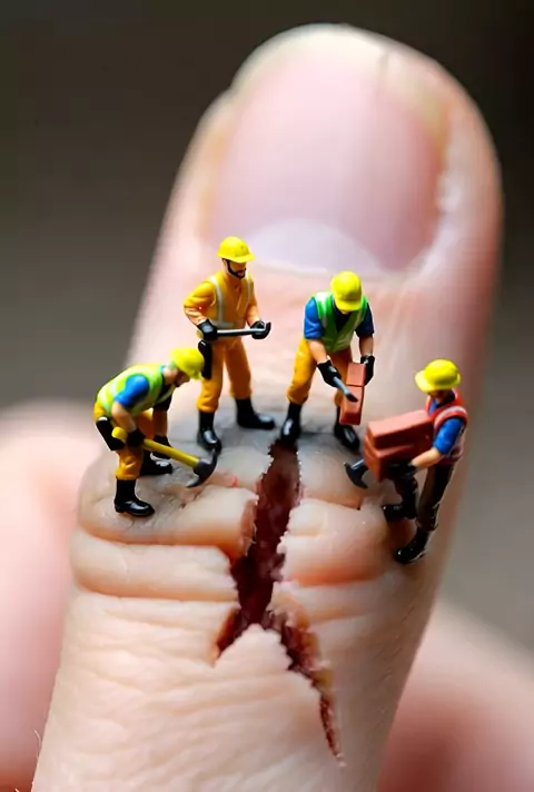 Tiny workers ⛏️ mining a fingertip crack! ✨ #tinyworld #nails #miniworkers