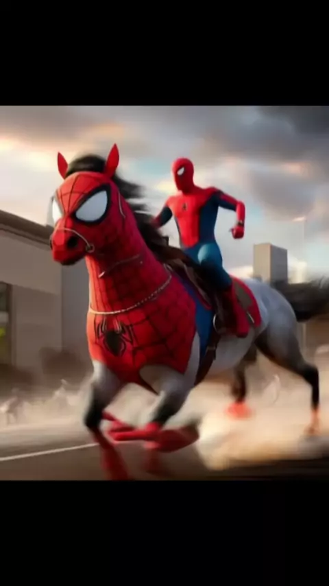 Homem aranha cavalgando com seu cavalo spidercavalo #spiderman #desenhoanimado #niños