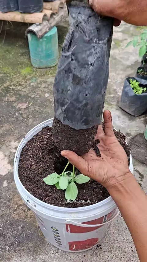 Memanfaatkan bambu sebagai tiang rambatan tanaman timun yang ditanam di pot bekas cat##berkebun#tanaman